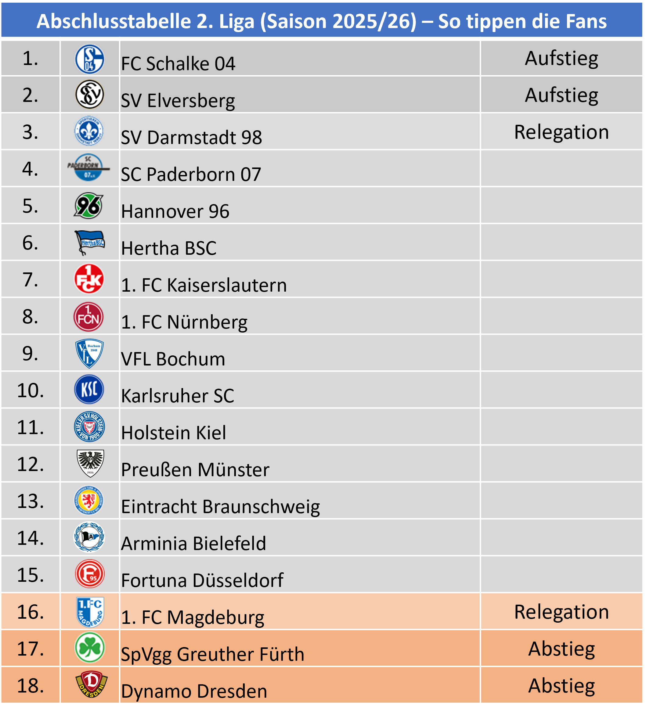 2. Liga: Abschlusstabelle 2025/26