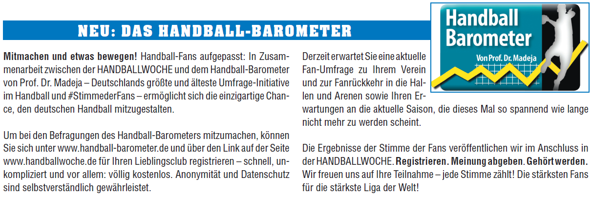 Im Web, mobil und mit mehr Funktionen für dich. "Im Gegensatz zu vielen Online-Umfragen ist beim Bundesliga-Barometer ein repräsentativer Querschnitt der Bundesliga-Fans gewährleistet, genau wie beim Original-Bundesliga-Barometer, das in allen Bundesliga-Stadien der deutschen Prime-Sportarten erhoben wurde", versichert Professor Alfons Madeja. "So erreicht die Meinung der Fans nicht nur den Freundeskreis oder den Stammtisch, sondern auch die Vereine."